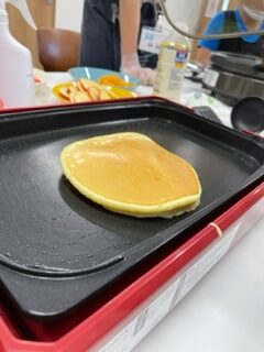 今日はみんなのガッコウでホットケーキを作りました。僕はホットケーキをひっくり返すのが好きです。なので今日もうまくできました。自分で作ったのでもちろんとてもおいしかったです。
