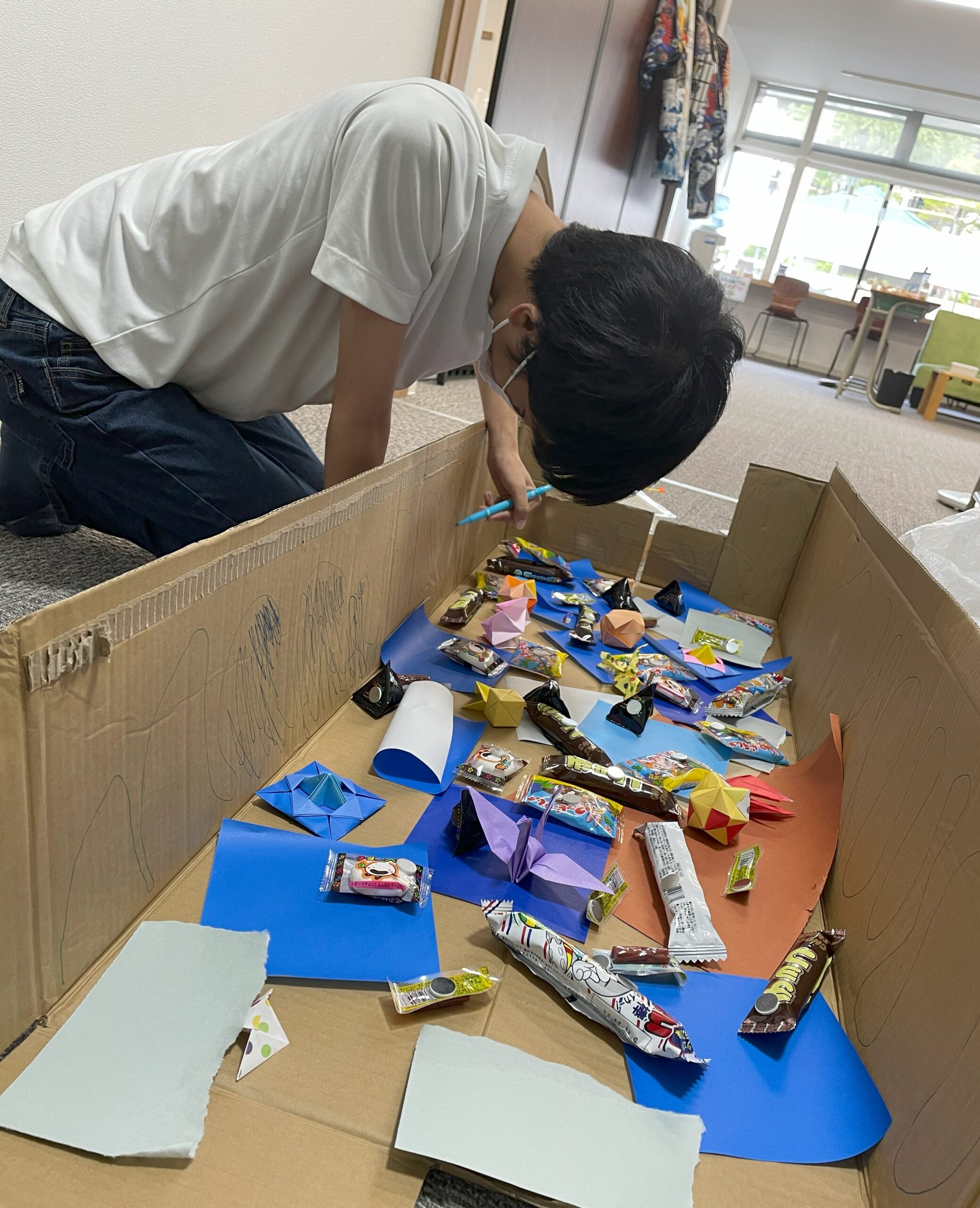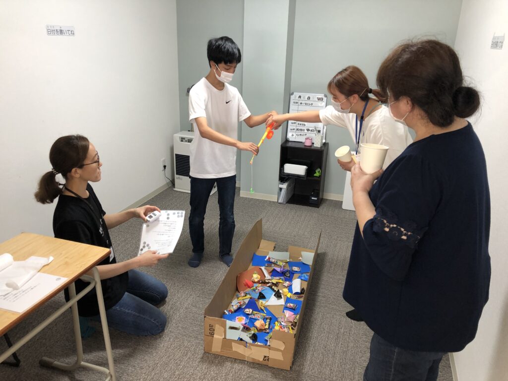 段ボールで釣り堀を作ったり、空のペットボトルをボウリングのピンになるようにデザインしたり…
