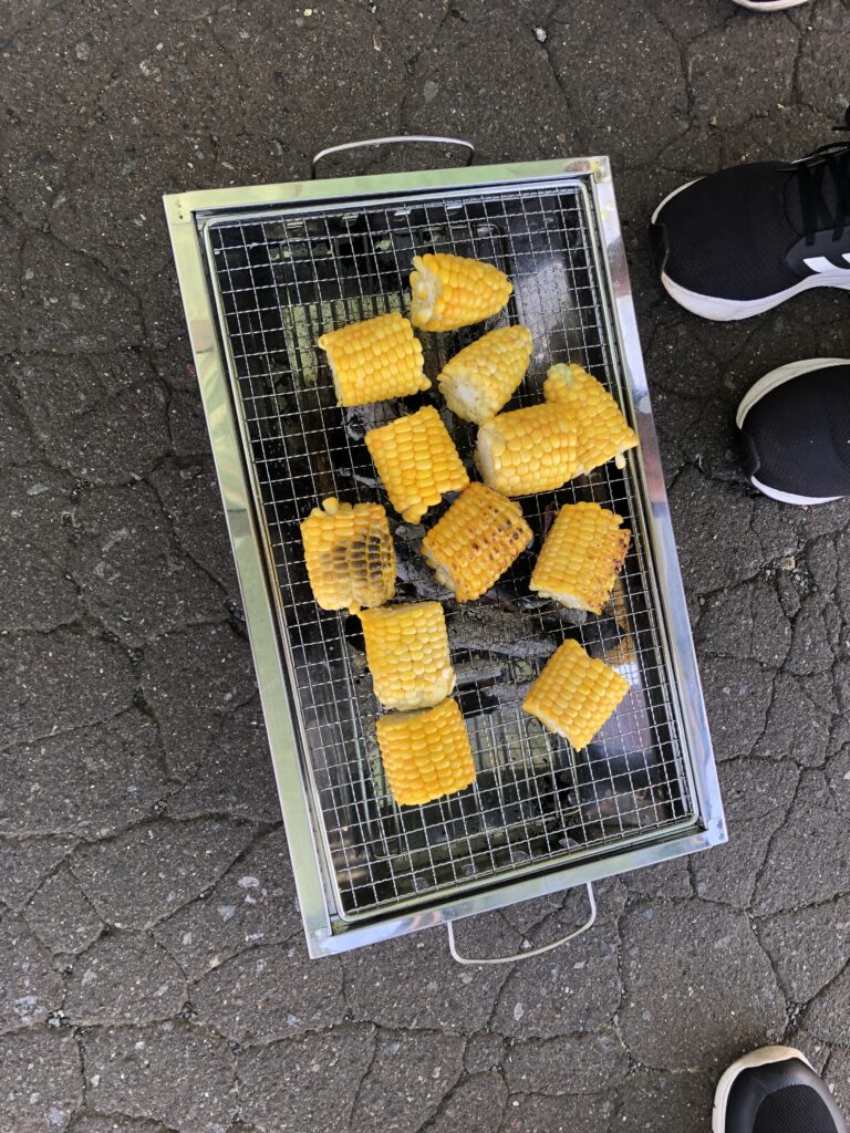 外に移動して。。。。炭をおこして